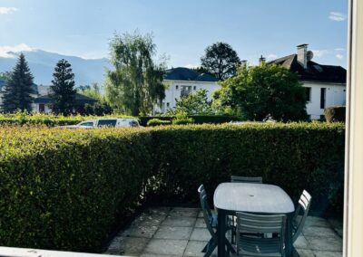 Situé au rez-de-chaussée, un Mendi 2 bénéficie d’un accès privilégié au jardin arboré et d’un salon de jardin.