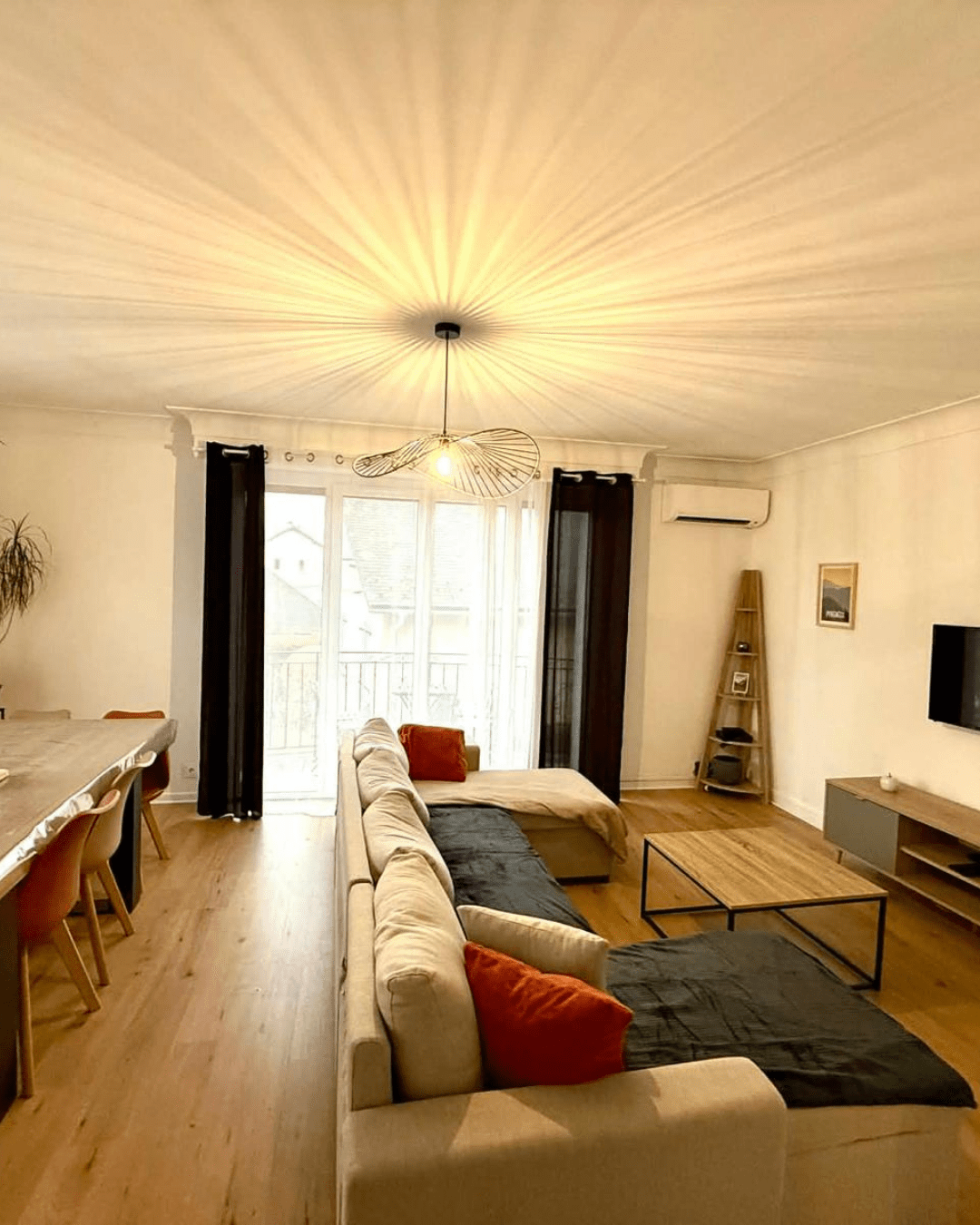 - Salon avec une grande table conviviale