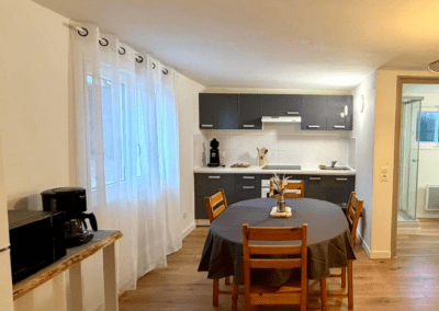 Tous nos gîtes disposent d’une cuisine entièrement équipée pour faciliter votre séjour.Lave-vaisselle et machine à laver sont disponibles exclusivement dans notre gîte Mendi 1.